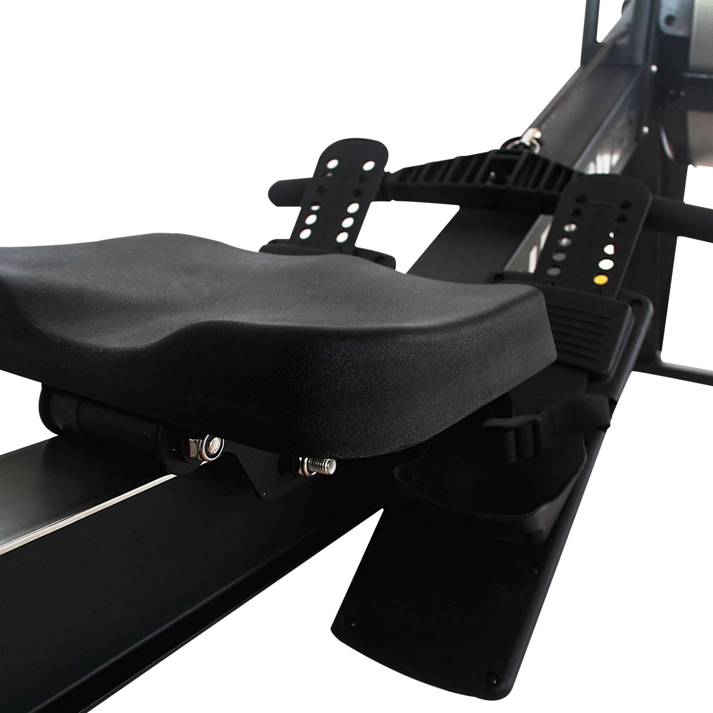 Adjustable padded seat with high-density foam for comfort during long training sessions. Non-slip footrests with adjustable straps fit all foot sizes, ensuring stability during rowing. The handlebar is wrapped in non-slip PU material, providing a comfortable, secure grip. The seat height and handlebar position are fully adjustable to fit users of different heights (150cm-195cm).