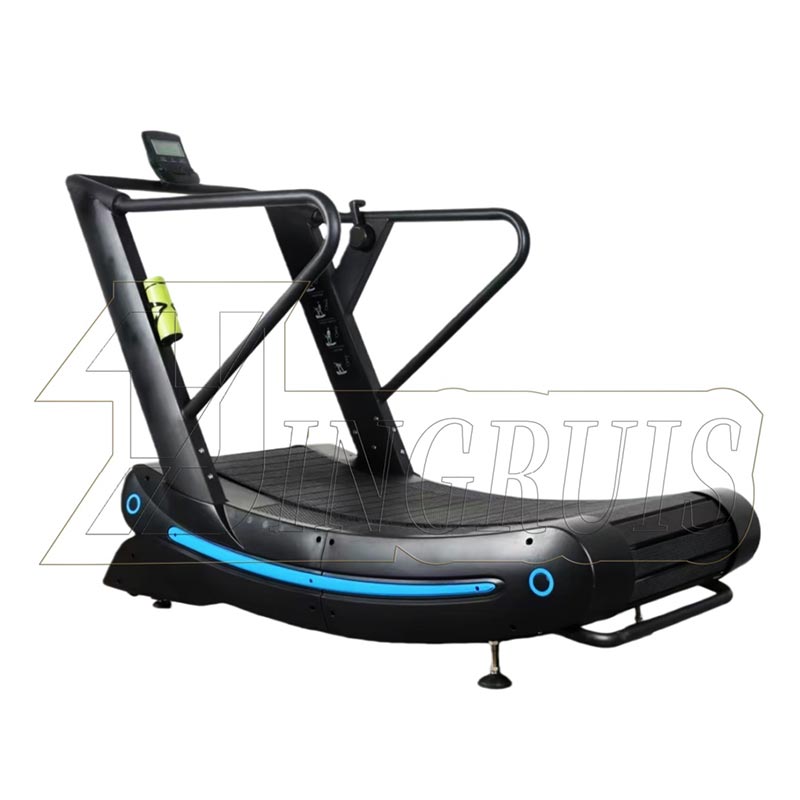 A curved manual treadmill, also known as a self-powered curved treadmill, differs from traditional electric