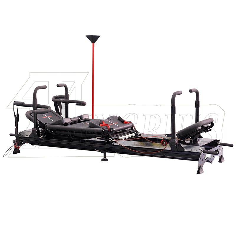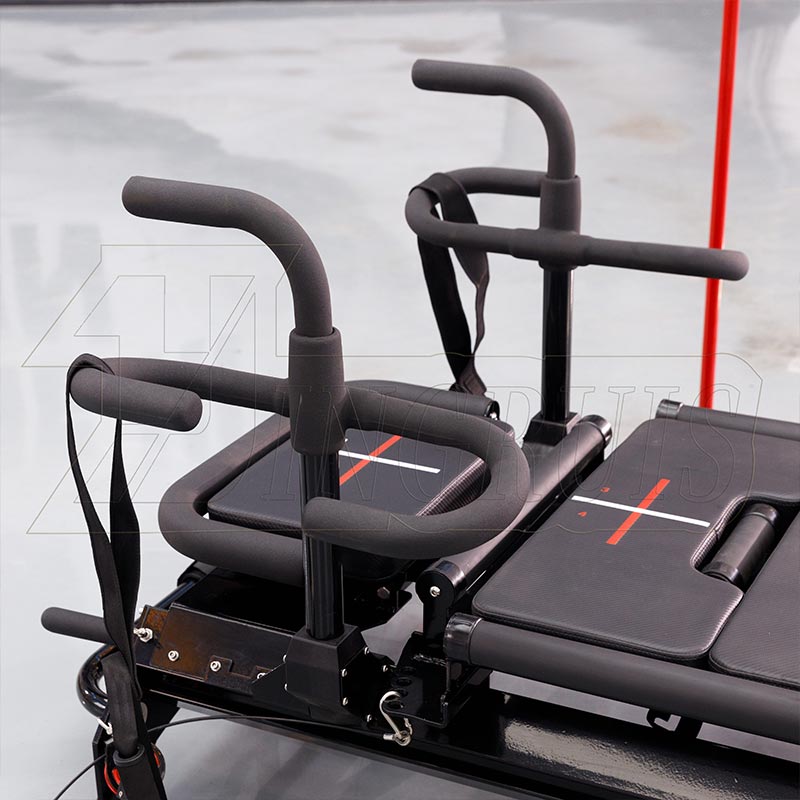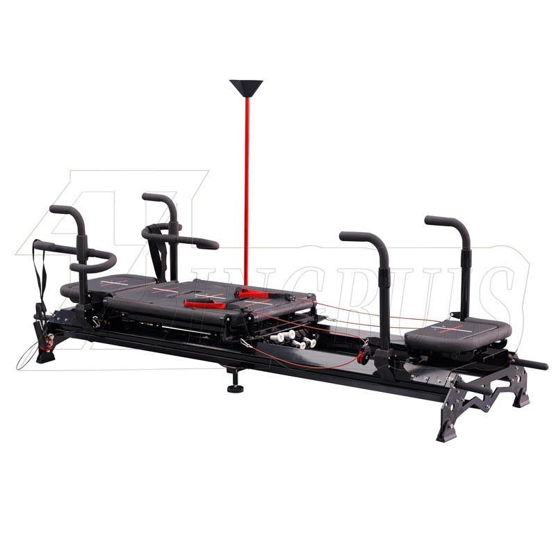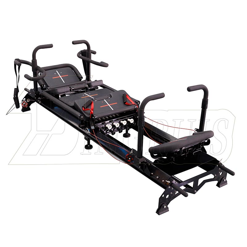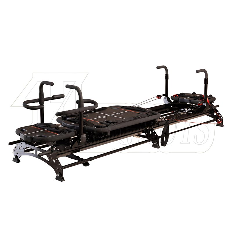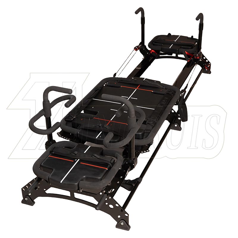 posture-improvement functions of the traditional Pilates Reformer with the resistance intensity of bodybuilding